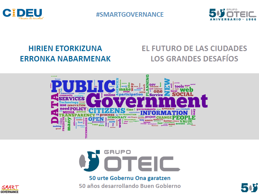 OTEIC, como empresa experta en Consultoría y Asesoramiento, cuenta con 50 años de experiencia en el desarrollo de Buen Gobierno en Gobiernos, Corporaciones Locales, Organismos Autónomos, Entes y Sociedades Públicas. Colaborando en la implementación del SMART GOVERNANCE. Por ello se encontrará a disposición de todos los asistentes a este importante evento.