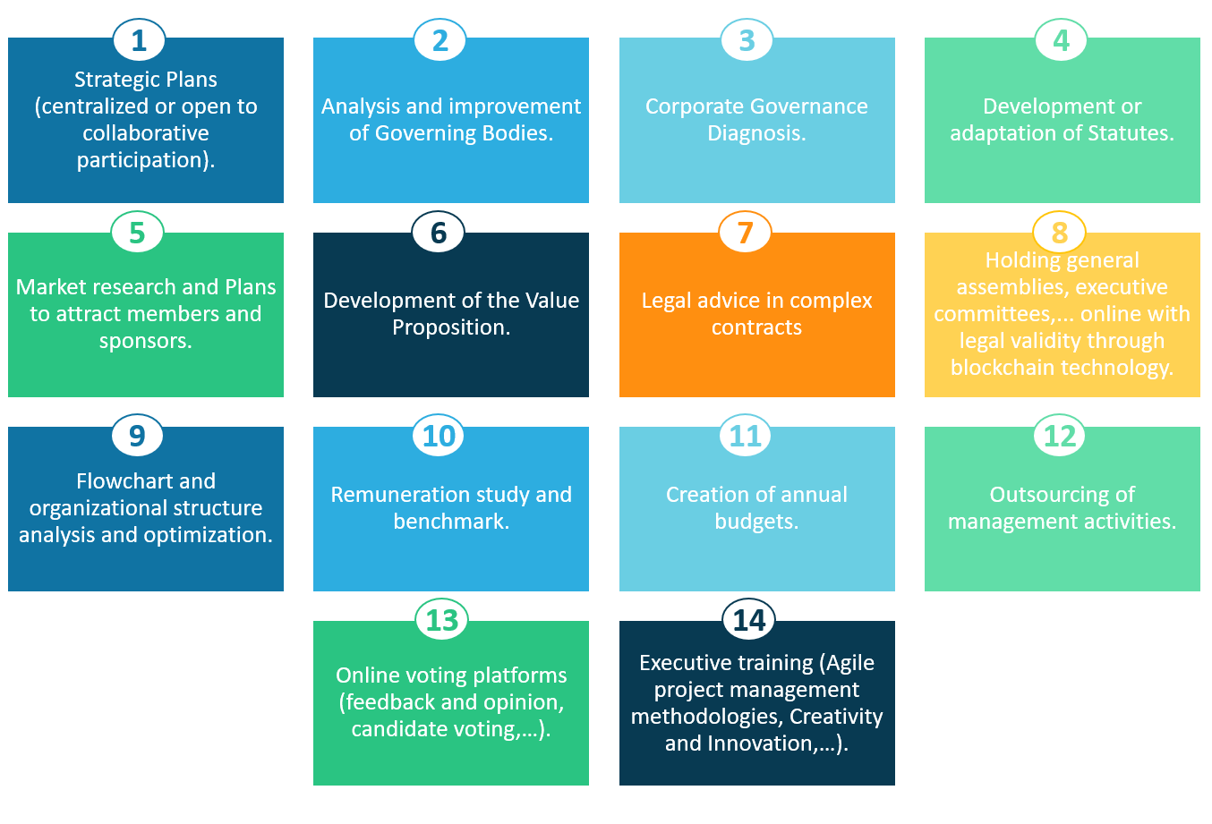| At OTEIC Consulting Group, we put at your disposal more than 50 years of experience in the field of Management Consulting and a multidisciplinary team made up of Economists, Lawyers, Engineers, Humanists, ... with whom we form the teams that each project requires. In these more than 5 decades of experience, we have worked with numerous international organizations and networks in projects of Strategy, People Management, Governance, Communication, Innovation and Legal, among others. We always work developing solutions tailored to the challenges of our clients. Highlighting below some of the types of projects we develop: